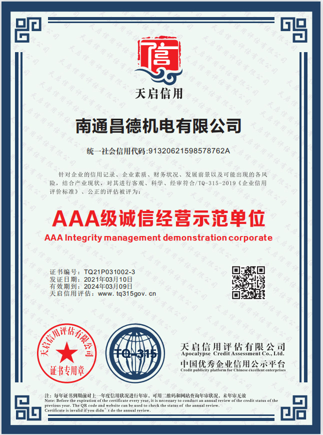 | 上一篇:AAA級質量服務誠信單位 下一篇:AAA級資信企業 |